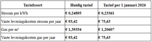 Lagere variabele tarieven per 1 januari 2026*